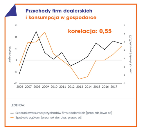 Konsumpcja jest tym wskaźnikiem makroekonomicznym, który z punktu widzenia analizowania rynku dealerskiego wykazuje najwyższy wskaźnik korelacji z przychodami dealerstw.