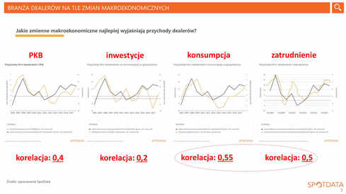 Jak wygląda wspomniana korelacja w przypadku branży dealerskiej? Sprawdził to dla nas Ignacy Morawski, ekonomista specjalizujący się w prognozach makroekonomicznych i założyciel ośrodka analiz gospodarczych SpotData. Ekspert przyjrzał się wskaźnikom finansowym polskich dealerstw z ostatniej dekady (głównie przychodom i rentowności) oraz zestawił je z najważniejszymi wskaźnikami ekonomicznymi w skali makro (m.in. dynamiką PKB, inwestycjami, konsumpcją). Jakie wnioski płyną z tego eksperymentu dla dealerów? Którym wskaźnikom gospodarczym powinna się przyglądać nasza branża szczególnie uważnie? Odpowiedzi – niekiedy zaskakujące – znajdują się w opracowaniu, które dziś udostępniamy po raz pierwszy!