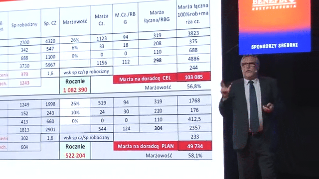 Przepracowując temat marży i jej obliczania, warto „pobawić się” moim narzędziem kalkulacyjnym [uzyskaj dostęp do kalkulatora marży i pełnej prezentacji wideo]. Zauważmy, że raptem jeden klient dziennie więcej u doradcy serwisowego daje w skali miesiąca nie mniej niż 10 tys. zł marży. Nie zapominajmy też o motywowaniu doradców serwisowych, utrzymując jednocześnie akceptowalny dla nas poziom płac. Ale jak to uzyskać? Przecież mamy do czynienia z pozornie przeciwnymi interesami. Z jednej strony oczekiwania pracownika (i rynku), z drugiej – chęć osiągnięcia jak najwyższej marży. Unikajmy kominów płacowych, skupiając się na tym, żeby to słabszych pracowników „ciągnąć do góry”, a płace uzależniać od tego, czy pracownik spełni – chodzące w parze z wyższymi poborami – wyższe wymagania.